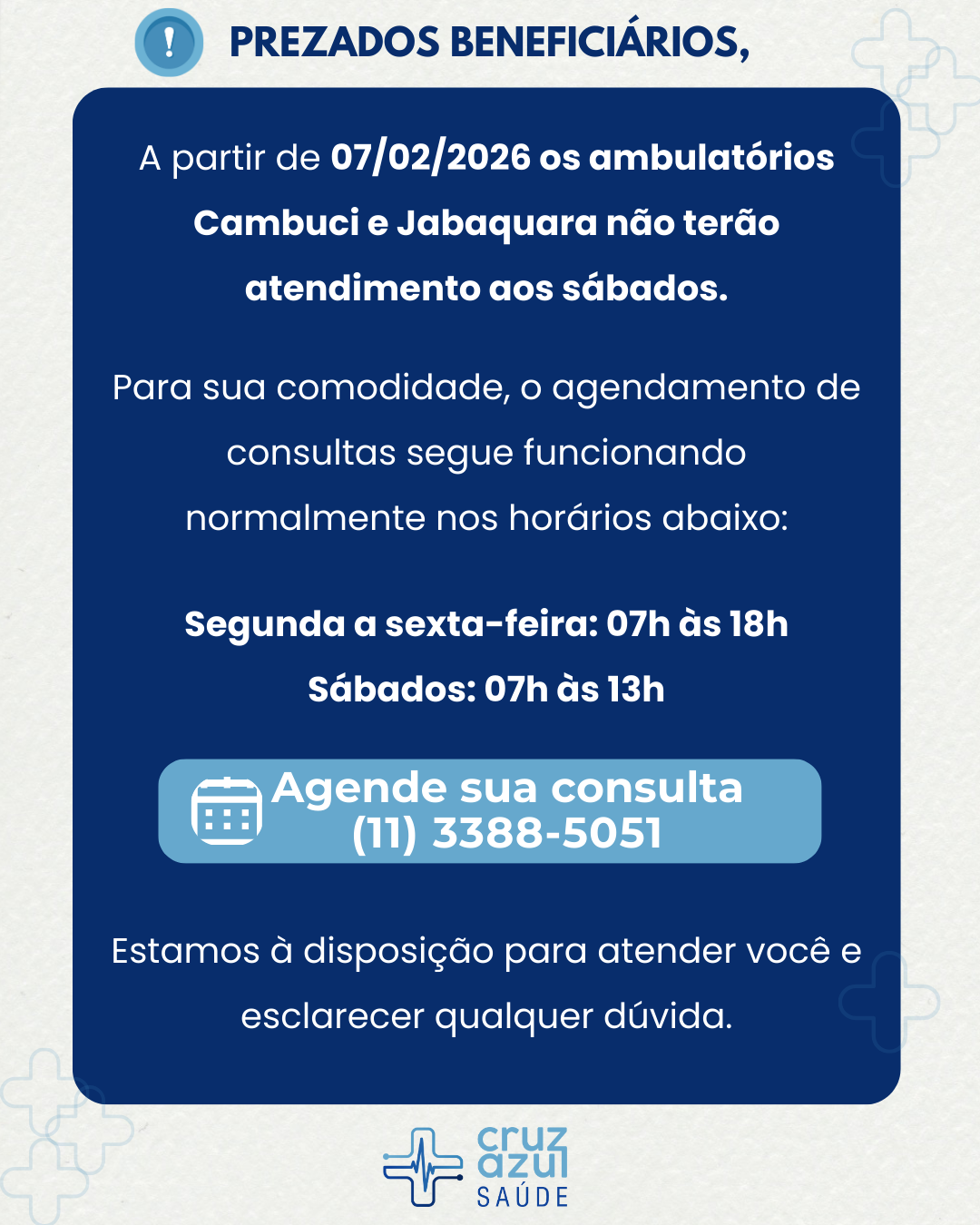Em maio deste ano, inauguramos o ambulatório Cruz Azul Saúde, o primeiro oficial da operadora. Durante o evento que declarou